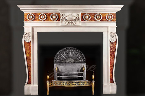 White Western Style Marble Fireplace Mantel With Black Base round indoor fireplace buyer